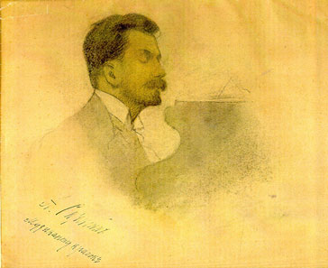 It turned out that Baranoff-Rossine had "proclaimed" his ideas and experiments in "optophony" field for broad audience for the firtst time in Oslo as far back as 1916, when he had to stay and work in Scandinavia two years during WWI after his first, yet pre-revolutionary staying in Paris. Artist's childs, Tatyana and Dimitry Baranoff-Rossine, now living in Paris, prove the fact by reviews in those time newspapers. But 1916 is the date of the first light-music performance, so the question arises when and where first steps were made in this direction? French art critics from Paris "University-VII" are of opinion that all begun in 1912, during his first staying in Paris. But precise, concrete data how it happened,how and where the idea arose are absent. The data are not available neither from the art critics nor from artist's childs I talked with both at international symposium and at their home and have been communicating up today via Internet. But it is possible it will be the abovementioned portrait of Scriabin that help coming nearer to the answer to still unanswered questions. The matter is that the portrait hung not alone but adjacent to the sketchy graphic picture, being of the same dimensions, depicting our another great composer - Rakhmaninov. There need be no doubt that it is Rakhmaninov, because there is pencil signature on the portrait. The portrait of Scriabin also features corresponding identifying signature. But at the moment it became clear that so to say the discoveries don't end, because I noticed suddenly that signatures were made by different persons. It turned out that the pictures were signed not by artist but by the composers themselves (I do remember Scriabin's attacking handwriting since my youth, since my first visit to museum of Scriabin!). So the first conclusion is that painter seems to picture the musicians not by memory, not from photoes, but from life, i.e. at live meeting! The second conclusion is that one found not merely unknown portraits of great Russian musicians, but also their autographs! And the final, third, conclusion is that major sensation is the content of the inscriptions made by composers above the signatures. While Rakhmaninov limited himself to trivial and jokeful "To painter from his model", leaving probably the portrait on agreement to artist, the text on the second portrait will make to ponder, to get excited both experts in Scriabin and experts in light-muisc history. The text was to all appearance merely disregarded by both painter's childs and other possible spectators. The inscription reads: "Scriabin. To musician of colours"!...