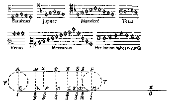 Ученикам Пифагора удалось даже установить конкретные данные об этой внеземной космической музыке: Сатурн звучит - "си", Юпитер - "до", Maрс - "ре", Солнце - "ми", Meркурий - "фа", Венера - "соль", Луна - "ля". Поразительно, что рожденная независимо от пифагорейцев подобная музыкальная космология имела место и в культуре Древнего Востока, прежде всего в Индии и в Китае. Смешно, наивно, трогательно - но это убеждает в существовании единства в развитии человеческих цивилизаций, это убеждает и в закономерности появления глобальной метафоры "музыка сфер", генетически связанной с высоконравственной верой мыслящего человека в незыблемую красоту совершенного мира.