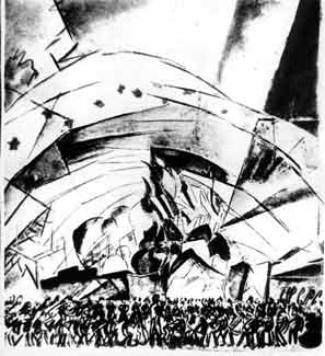 Рис.3. Исполнение "Прометея" в большом театре (6 ноября 1918 г., Москва; сценография А.Лентулова). |